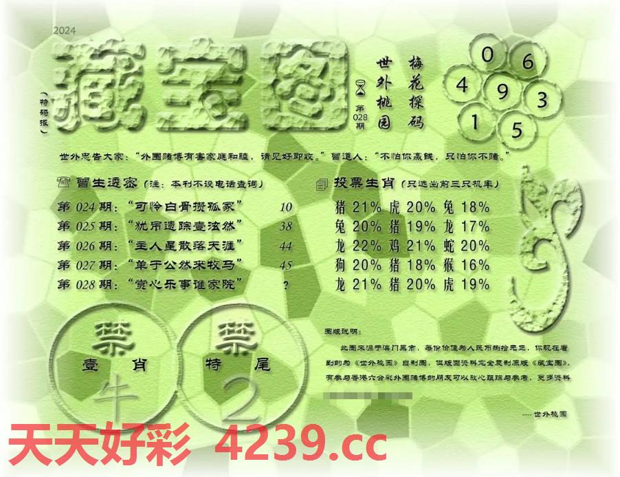 001期藏寶圖 新:犹得双双近钓矶 老:明年不怕催租苦 禁:鸡 禁:3尾 玄機字:《蜮》(猴32绿金)